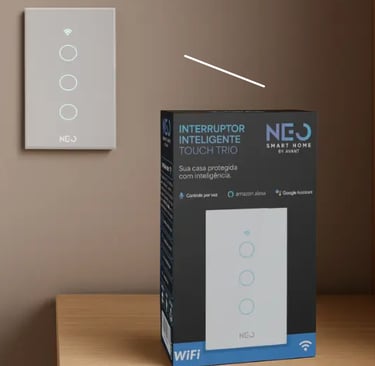 A Neo Avant é uma marca especializada em automação residencial acessível, com linha completa de interruptores inteligentes em diferentes configurações — de 1 a 6 botões — que podem ser combinados em um ecossistema unificado pelo mesmo aplicativo.