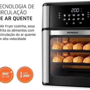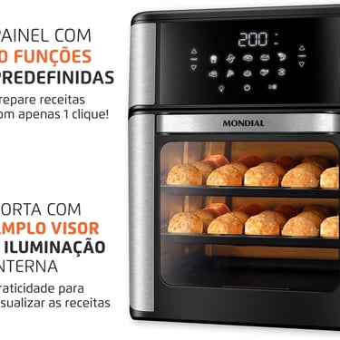 A Mondial AFON-12L-BI não é apenas uma air fryer comum. Trata-se de um modelo multifuncional que vai além da fritura a ar para oferecer experiências equivalentes a um mini forno elétrico, com eficiência térmica e resultados surpreendentes.